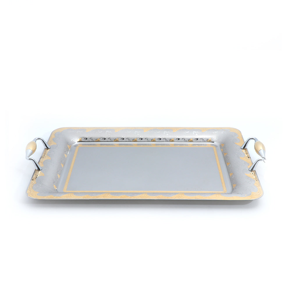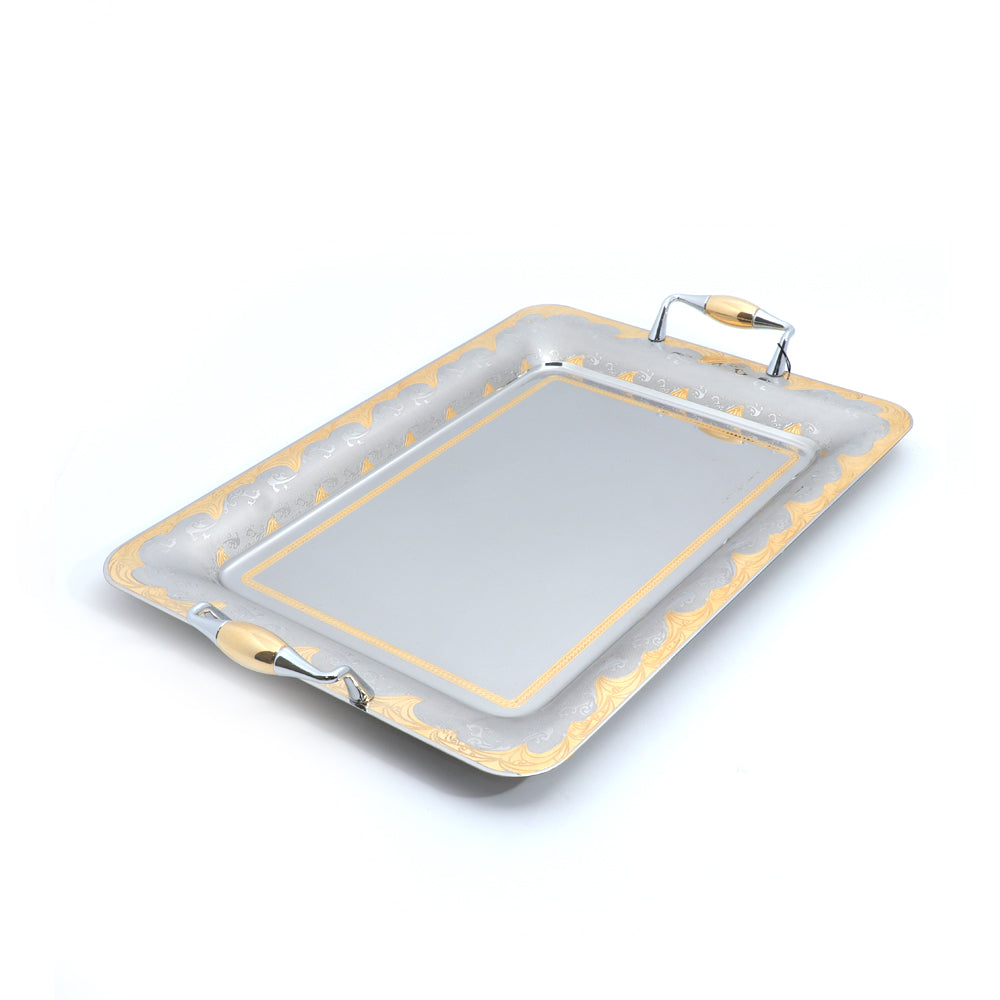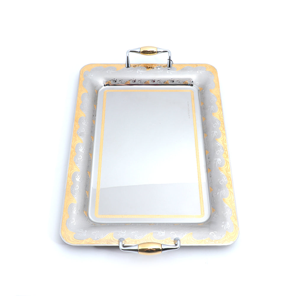 This italilan tray in 18/10 stainless steel with Gol or silver plated is perfect for serving all your essentials. availble in diffrent sizes,shapes and diffrent designs,