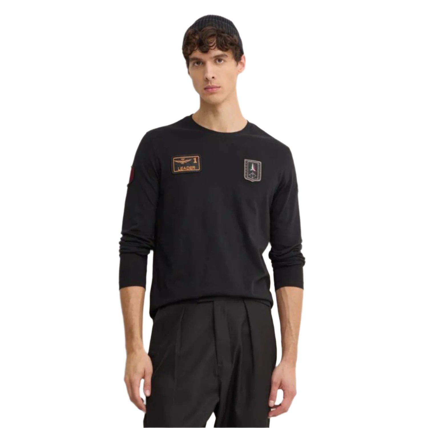 Aeronautica Militare Men's Black Regular Fit Long Sleeve T-shirt