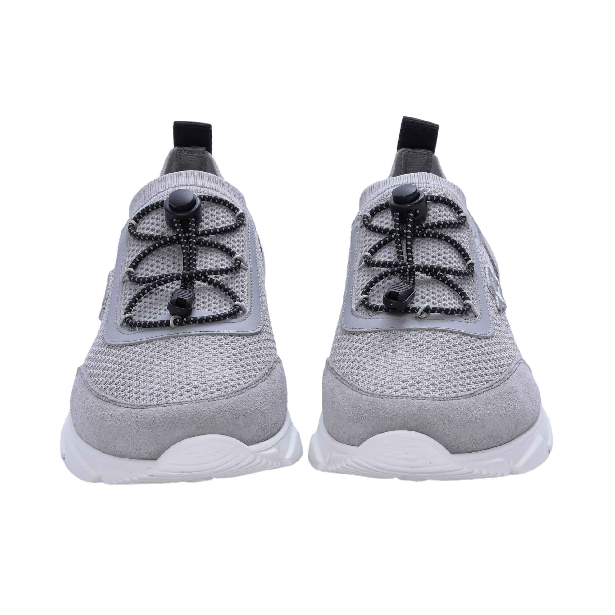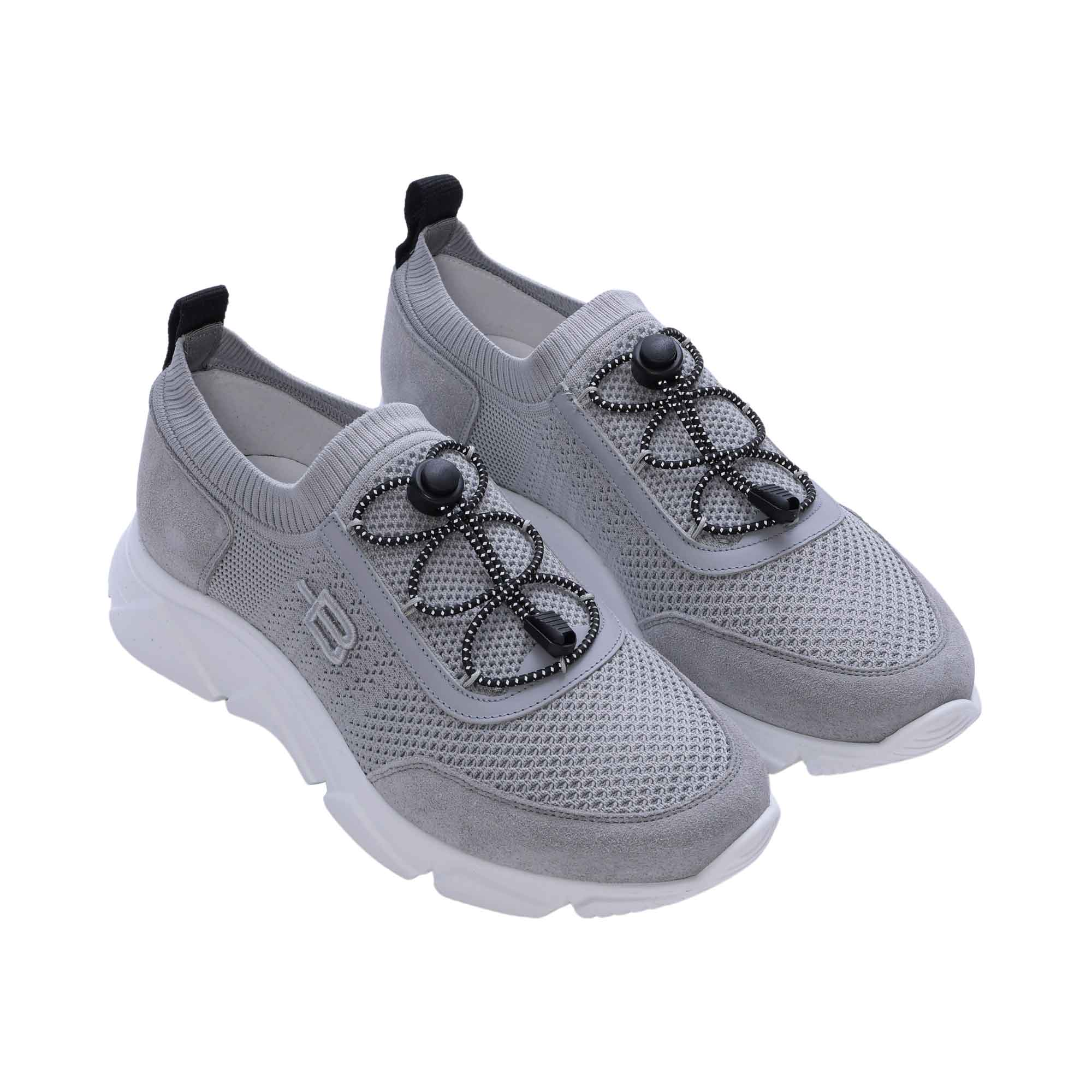 The Baldinini Men's Grey Sneaker is an stylish choice for everyday wear. The classic sneakers feature a textile knit fabric upper with Grey suede inserts and a technical fabric lining for a comfortable fit. The laces and drawstring fastening provide a secure fit, while the leather insole ensures an ergonomic and comfortable fit. The rubber outsole provides durability and grip, while the round toe adds a stylish touch. These sneakers are perfect for the modern man who values style, comfort and quality. SPECIFICATIONS