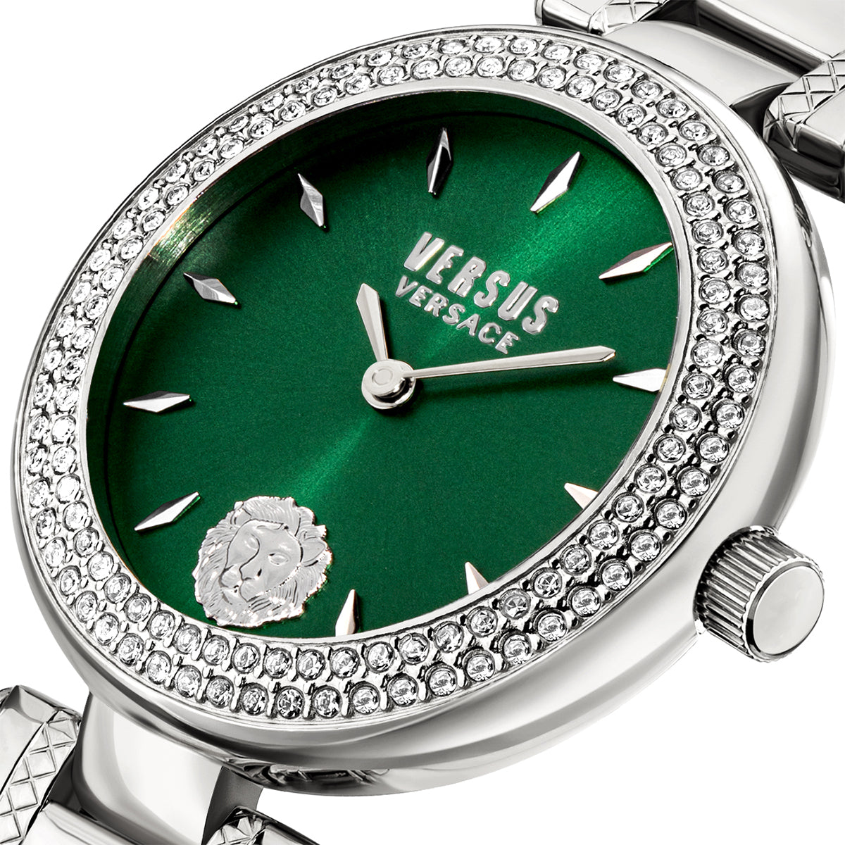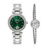 Versus Versace Brick Lane Ladies Green Dial Watch + Stainless Steel Bracelet Box Set