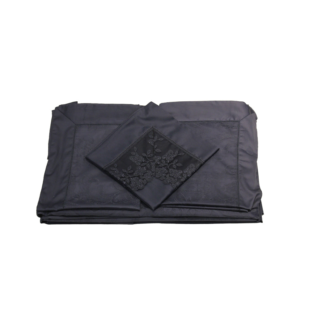 The design is knitted with jacquard technology and embroidered with manual embroidery and lace. This product is one of the most luxurious bedroom products in the world.