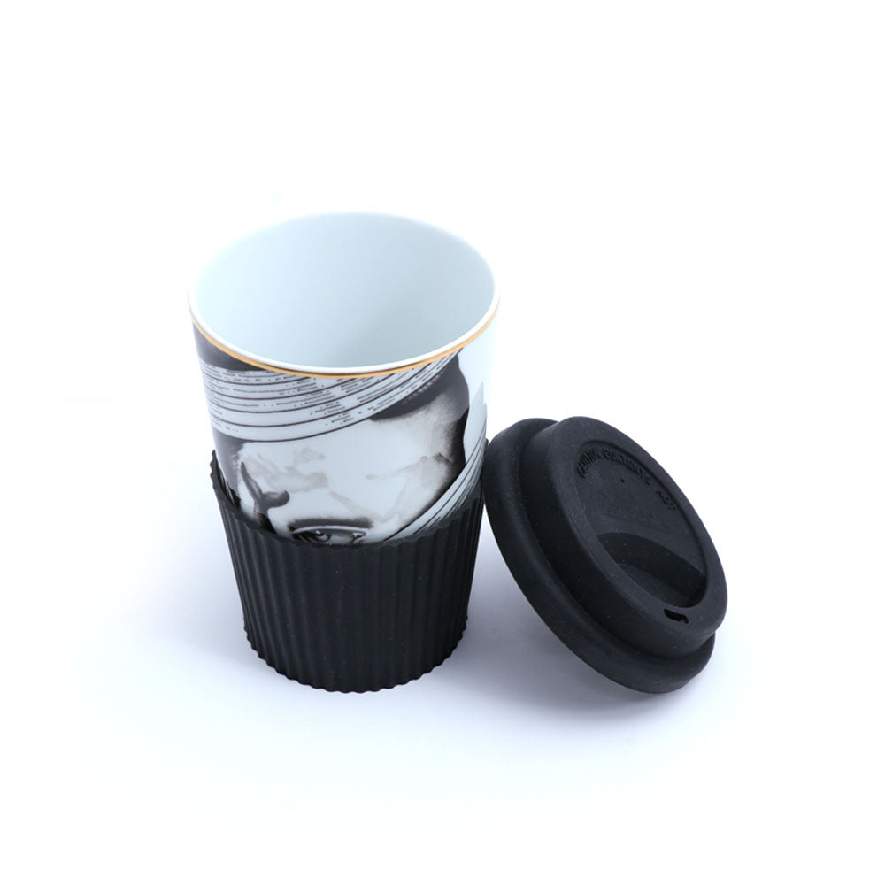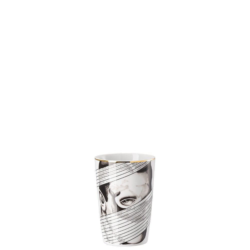 This fine Rosenthal dinnerware is called Tattoo, Cilla Marea N1. It is produced using the finest porcelain creating a style that is best described as modern and design oriented. The travel mug can hold up to 13 oz. of liquids. The most prominent color of this item is black. Inspired by the rugged beauty of the sea and those who brave its waves, Italian tattoo artist Pietro Sedda and his label The Saint Mariner created a series of stunning designs for Rosenthal in watercolor and ink. The combination of his exceptional, light brush strokes and archaic figures creates a unique aesthetic, merging dream with reality, the figurative with the floral and the graphic with the metaphorical. The gift collection includes four designs that appear on plates, travel mugs, cups and bowls, as well as a limited-edition vase featuring an additional design. The unusual gold titanium coating on the espresso and tea cups lends them an extra special quality.