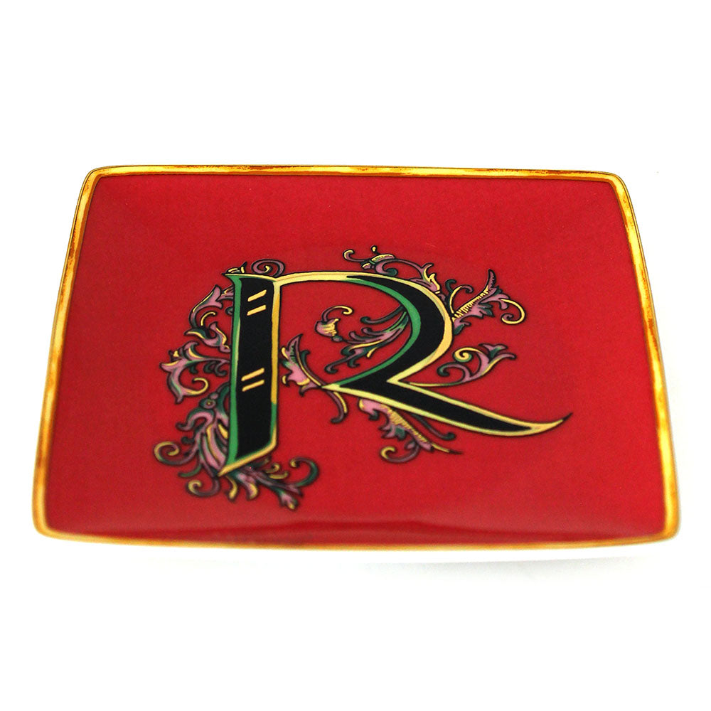 Crafted in the finest quality porcelain, this exceptional decorative plate boasts a heritage design from “south beach stories”, the famous photographic book created by the versace family. This dish features the letter "r" surrounded by barocco designs. High quality decor. This porcelain must be washed only by hand. With this decor the appearance of the porcelain or its artistic design are of main concern. The use of high quality colours and their subtle application therefore forbid dishwasher cleaning.