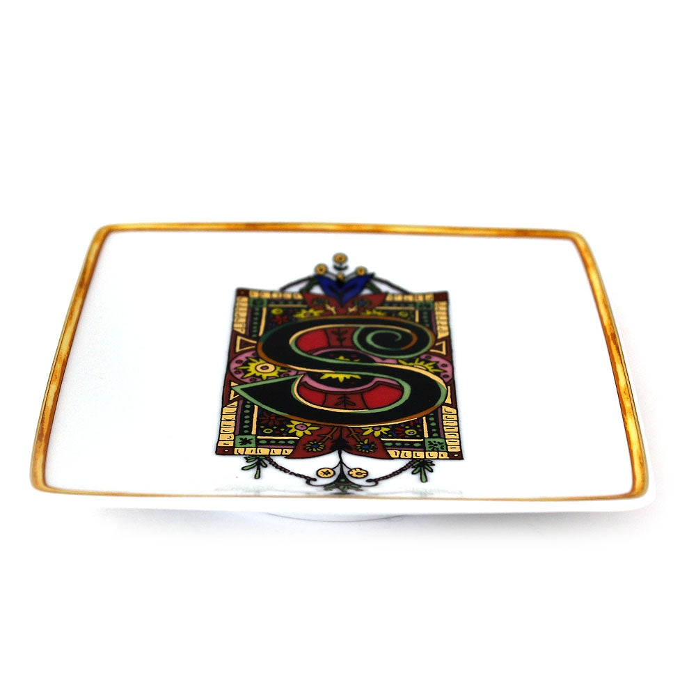 Crafted in the finest quality porcelain, this exceptional decorative plate boasts a heritage design from “south beach stories”, the famous photographic book created by the versace family. This dish features the letter "s" surrounded by barocco designs. High quality decor. This porcelain must be washed only by hand. With this decor the appearance of the porcelain or its artistic design are of main concern. The use of high quality colours and their subtle application therefore forbid dishwasher cleaning.