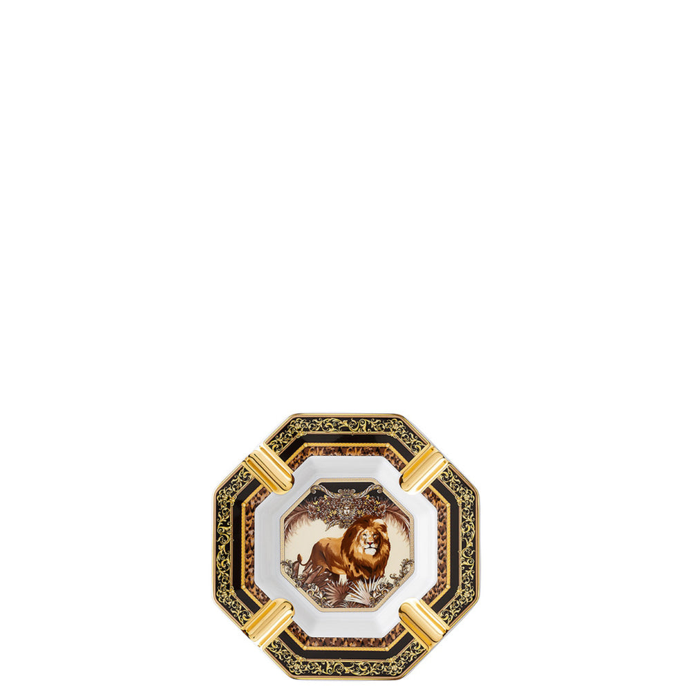 This beautiful Versace giftware is called La Regne Animal. It is produced using the finest porcelain creating a style that is best described as luxurious and glamorous. The ashtray measures 5 1/2 inch. The most prominent color of this item is gold.