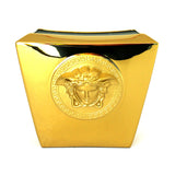 Versace creates extravagant, imaginative and colorful products and living worlds, like no other. Internationally the name stands for pure luxury; the interplay between classic and innovation. Central eye-catcher of this collection is the magnificent head of medusa, a distinctive versace emblem. The centrally placed head of medusa decorates all gift items of this series. This stunning versace giftware is called medusa gold. It is produced using the finest porcelain creating a style that is best described as luxurious and glamorous. The vase measures 18 cm. The most prominent color of this item is gold. Lavish ornaments decorate this piece and make it a 'must have' for everyone in love with opulent design.
