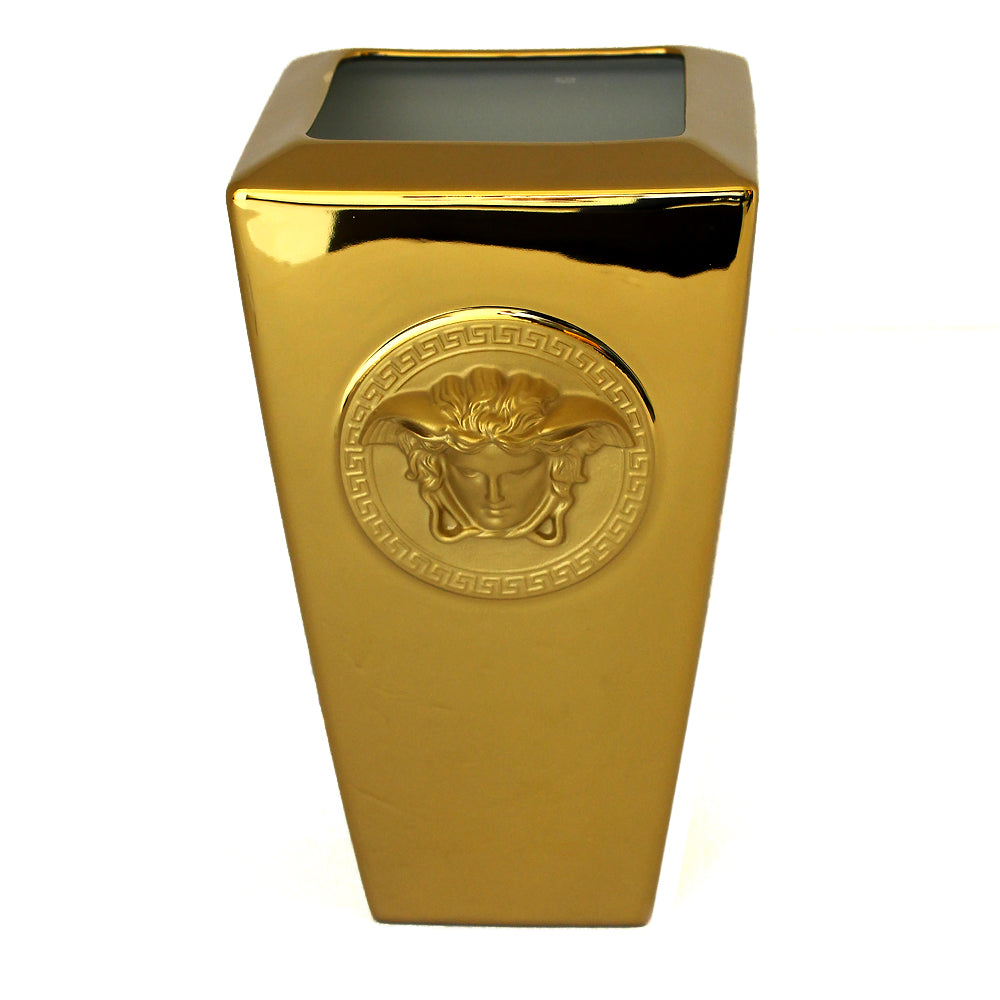 Versace creates extravagant, imaginative and colorful products and living worlds, like no other. Internationally the name stands for pure luxury; the interplay between classic and innovation. Central eye-catcher of this collection is the magnificent head of medusa, a distinctive versace emblem. The centrally placed head of medusa decorates all gift items of this series. This fascinating versace giftware is called medusa gold. It is produced using the finest porcelain creating a style that is best described as luxurious and glamorous. The vase measures 24 cm. The most prominent color of this item is gold. Lavish ornaments decorate this piece and make it a 'must have' for everyone in love with opulent design.