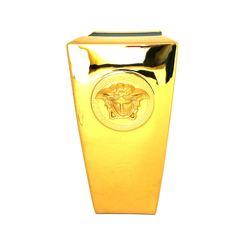 Versace creates extravagant, imaginative and colorful products and living worlds, like no other. Internationally the name stands for pure luxury; the interplay between classic and innovation. Central eye-catcher of this collection is the magnificent head of medusa, a distinctive versace emblem. The centrally placed head of medusa decorates all gift items of this series. This exquisite versace giftware is called medusa gold. It is produced using the finest porcelain creating a style that is best described as luxurious and glamorous. The vase measures 32 cm. The most prominent color of this item is gold. Lavish ornaments decorate this piece and make it a 'must have' for everyone in love with opulent design.