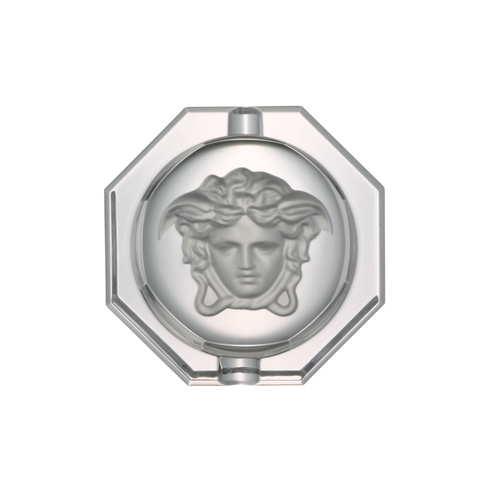 This elegant Versace giftware is called Medusa Lumiere. It is produced using the finest crystal creating a style that is best described as formal and elegant. The ashtray measures 6 1/4 inch. The most prominent color of this item is crystal.