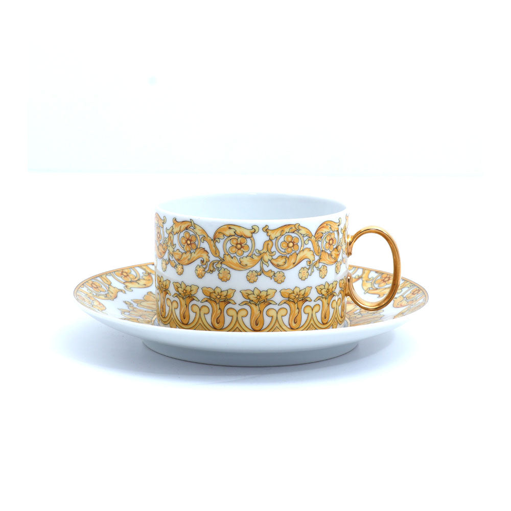 | The Versace Medusa Rhapsody Cups and Saucers Set of 6 is a luxurious and glamorous dinnerware collection. Made with the finest porcelain, this set is designed to exude opulence with lavish gold ornaments adorning each piece. It is a 'must-have' for those who appreciate lavish and extravagant designs. The set includes six coffee cups and saucers, with the prominent color of gold adding a touch of elegance to any table setting. The colors used in the design are fused into the glaze at a high temperature of 1000 degrees Celsius, making them durable and long-lasting. This also gives the set a scratch- and wear-resistant quality. However, it is important to note that the gold decors may still be susceptible to scratches due to their natural material properties. The set is also dishwasher safe, making it convenient and easy to maintain. The Versace Medusa Rhapsody Cups and Saucers Set of 6 is a stunning and luxurious addition to any dining set, perfect for those who appreciate opulence and elegant design. SPECIFICATIONS • Brand: Versace • Made with finest porcelain • Lavish gold ornaments adorn each piece • Set exudes opulence and luxury • Must-have for those who appreciate extravagant designs • Includes 6 coffee cups and saucers • Gold color adds touch of elegance to any table setting • Colors fused at high temperature for durability • Scratch- and wear-resistant • Gold decors may still be susceptible to scratches • Dishwasher safe for easy maintenance • Stunning and luxurious addition to any dining set • Perfect for those who appreciate opulence and elegant design About Brand Versace is a luxury Italian fashion brand founded in 1978 by Gianni Versace. It is known for its glamorous and opulent designs, incorporating bold colors, prints, and high-quality materials. The brand offers a variety of products, including clothing, handbags, shoes, accessories, and fragrances for both men and women. Versace has a strong influence in the fashion industry and is known for its iconic Medusa logo. The brand has a wide reach, with stores and boutiques in major cities all over the world. It has also collaborated with other well-known brands and celebrities, further elevating its status in the fashion world. The brand is often associated with the rich and famous, having dressed numerous celebrities and royalty throughout its history. It is also known for its extravagant runway shows and bold advertising campaigns, making it a highly recognizable and desirable brand. |