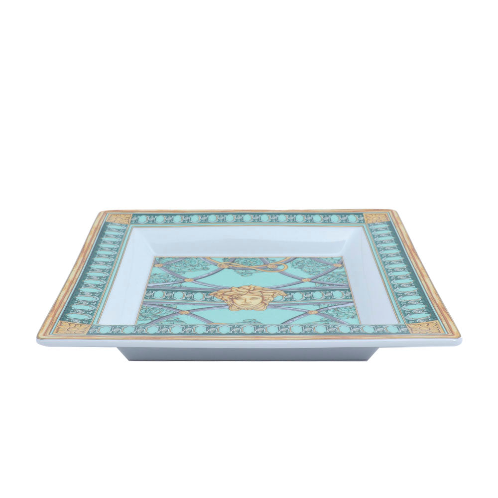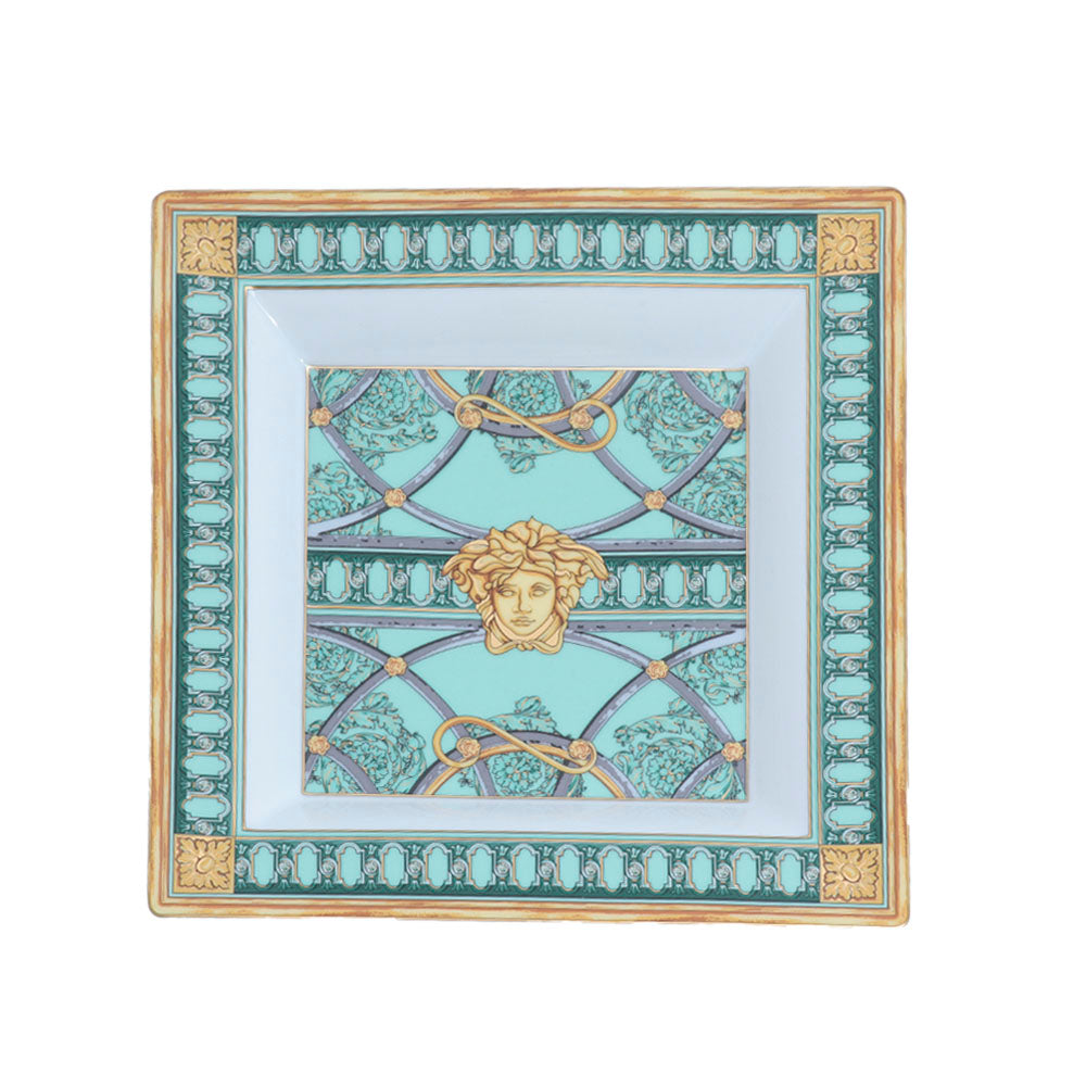 As you enter the Milanese palazzo in Via Gesù that Versace calls home, before discovering the famous mosaic of the world’s most powerful feminine icon - the Medusa - a scenic marble staircase catches your eye. Swirling metallic spirals ascending into the Versace casa are the inspiration for the new “La Scala del Palazzo” fine porcelain dinner service from Rosenthal meets Versace collection. A hint at what happens behind closed doors, the central circular element gives a first sighting into the intimacy beyond the staircase. The architectural style of the collection is enriched by an elegant green and pastel rose palette, reminiscent of the classical Italian palazzi facades. A contemporary shape that embraces expertly crafted coupe plates for the very first time. Unique and with a strong personality.