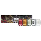Why have one when you can have them all? The Japonica Macaron 5 Candle Candle Gift Set is an incredible bouquet of fragrances packaged in a sliding drawer box. The Japonica Macaron Collection glass embossed in the intricate Japonica collection design, inspired by Japanese paper making.