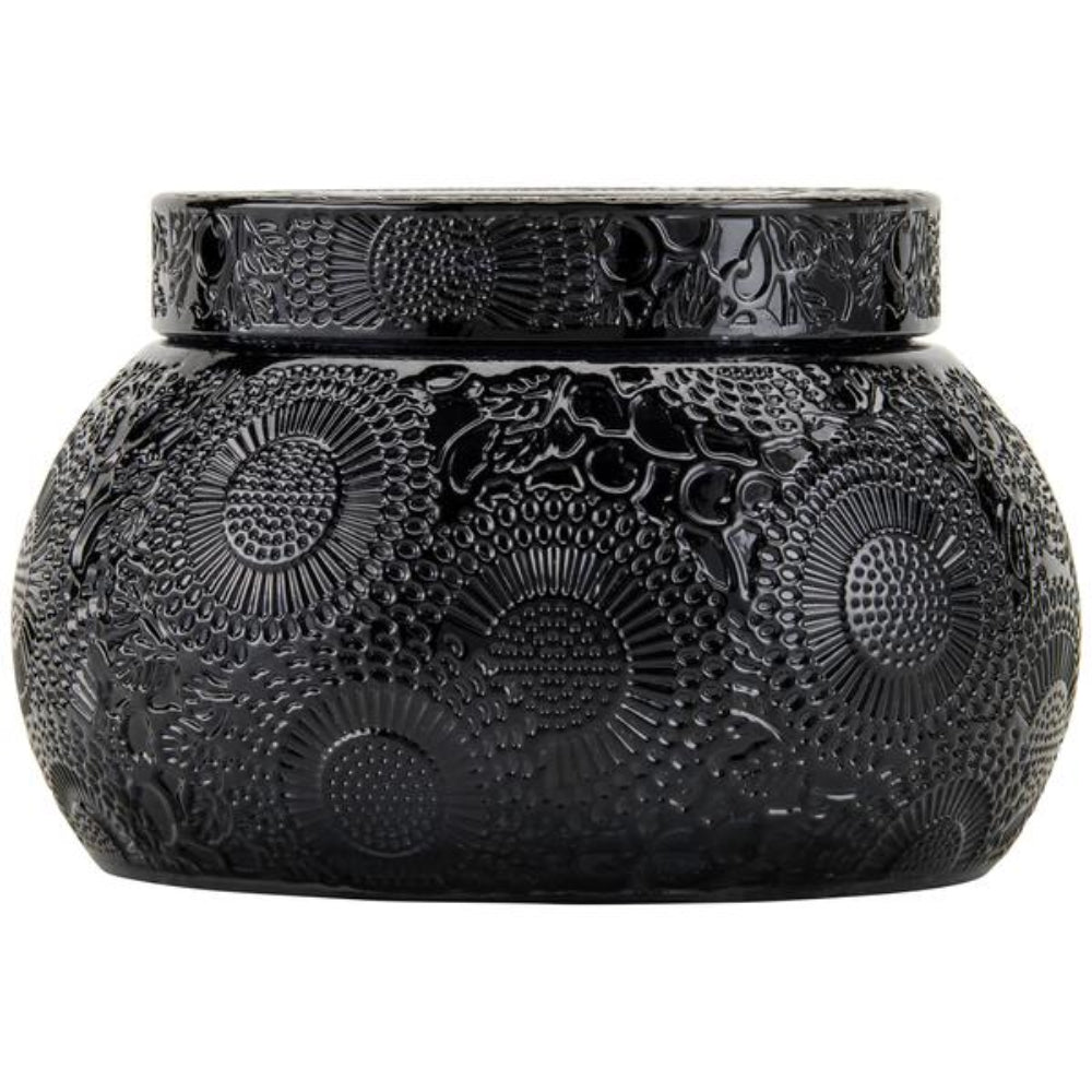 Its richness in both aroma and design is showcased in a lidded glass bowl; an ode to Japanese beauty. Embossed with salient detail, the container is a perfect centerpiece while accessorizing a space, as the clean burn delivers fragrance to every corner.