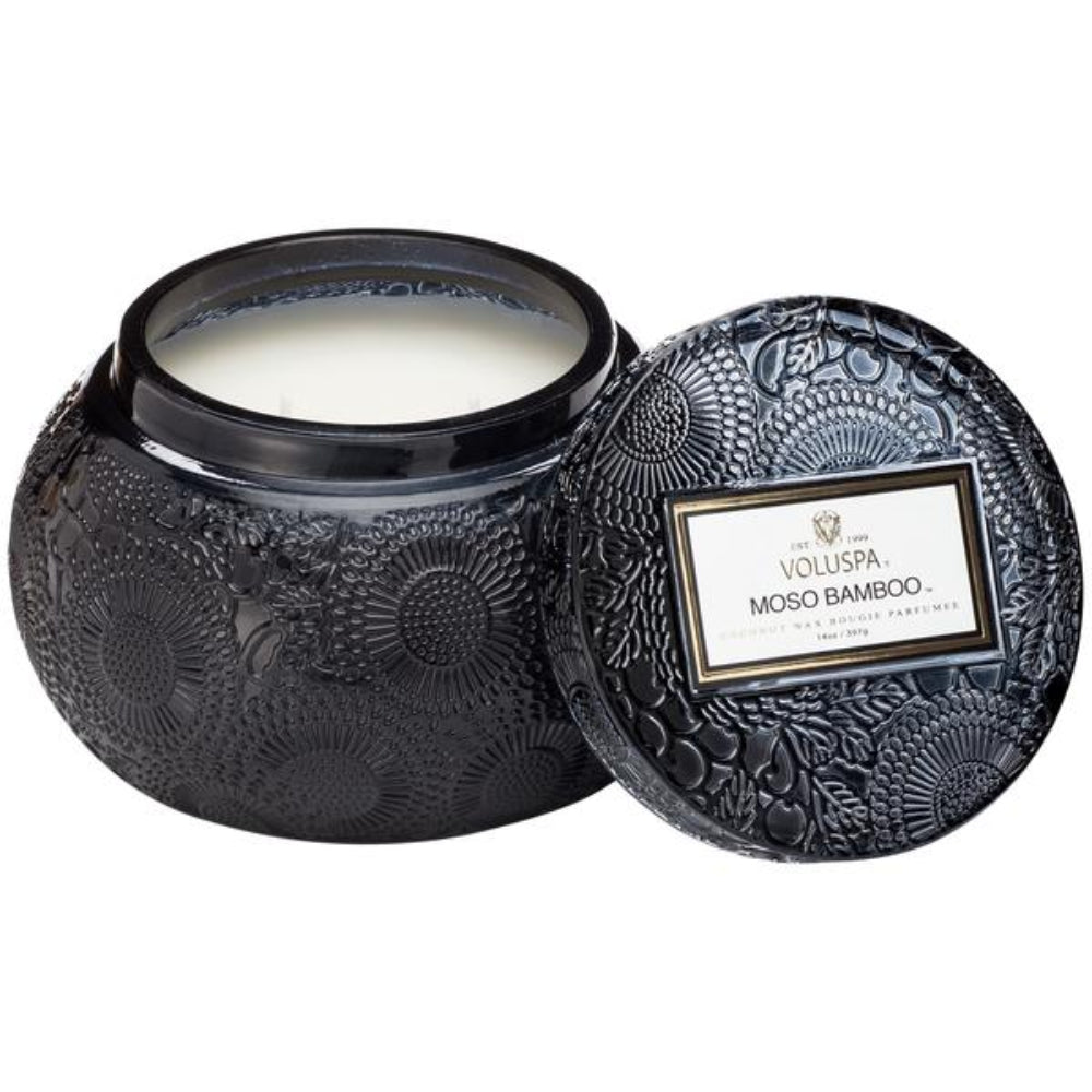 Voluspa Moso Bamboo Embossed Glass Chawan Bowl With Lid