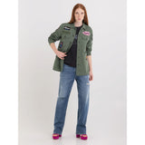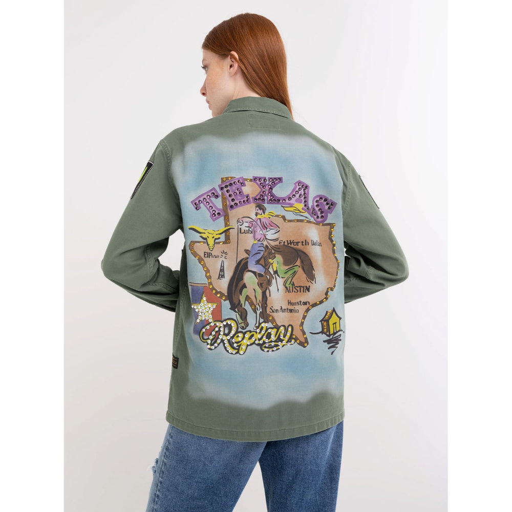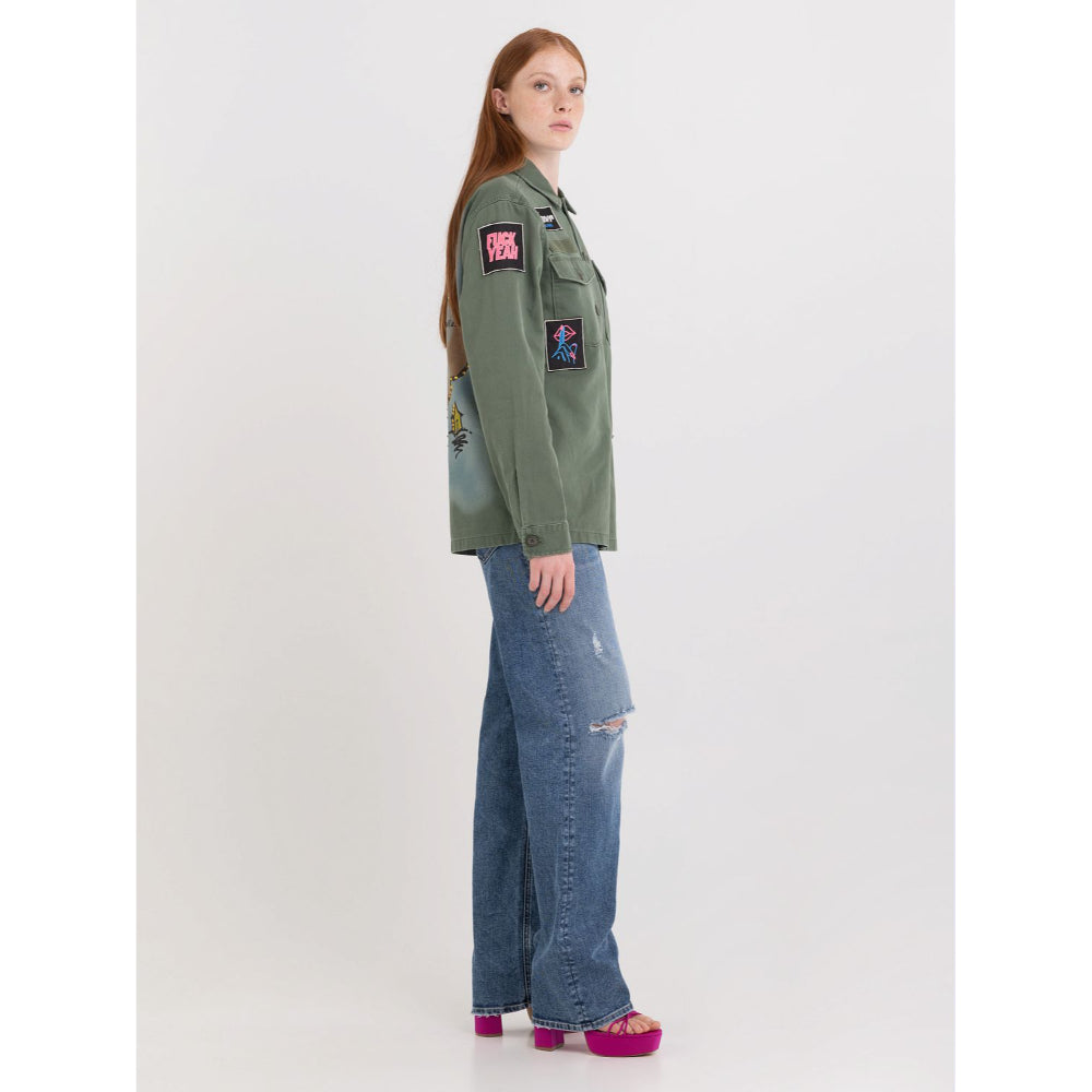 Casual shirt made of solid-coloured cotton satin. With long sleeves and wide fit, the garment is equipped with two flap pockets on the chest. Button fastening.