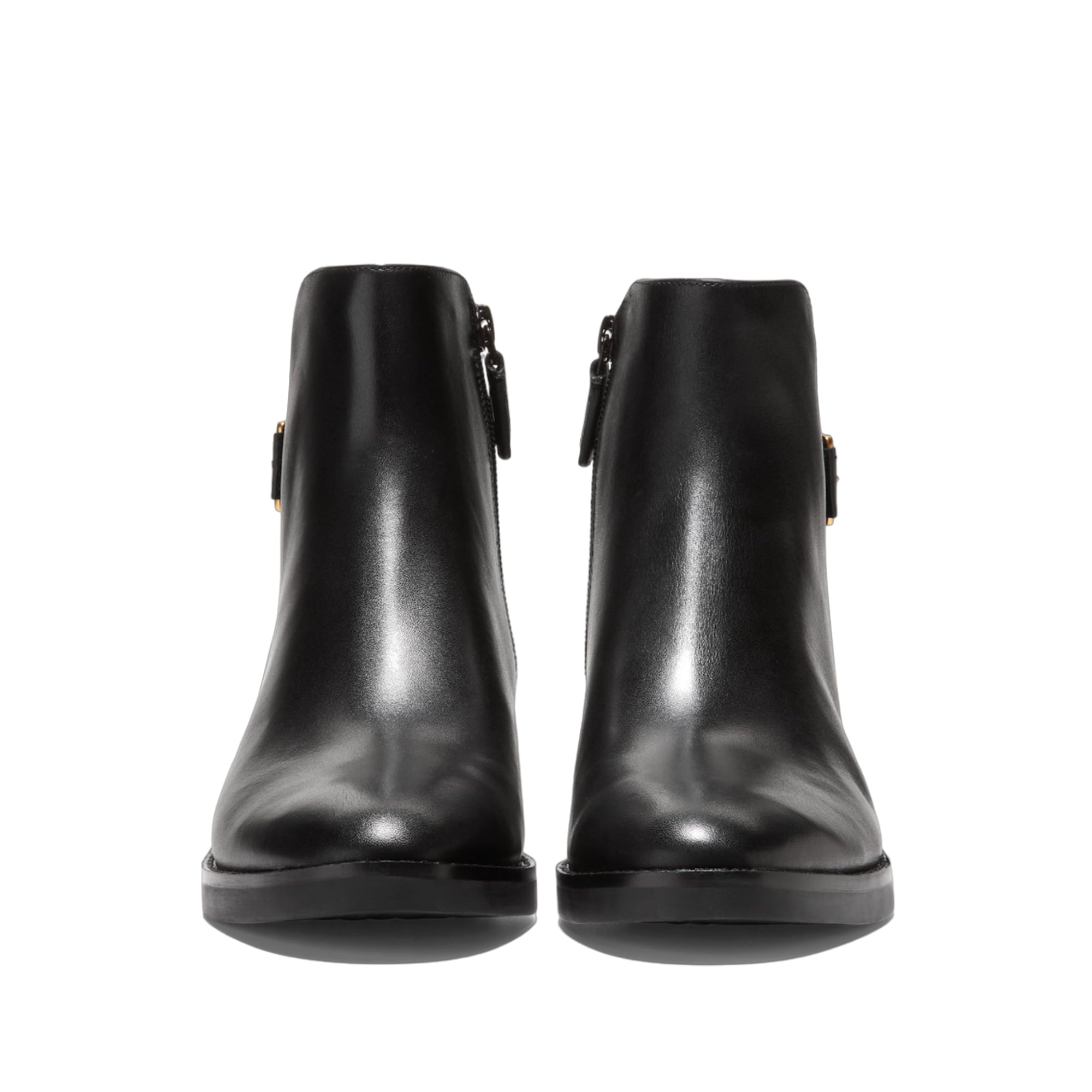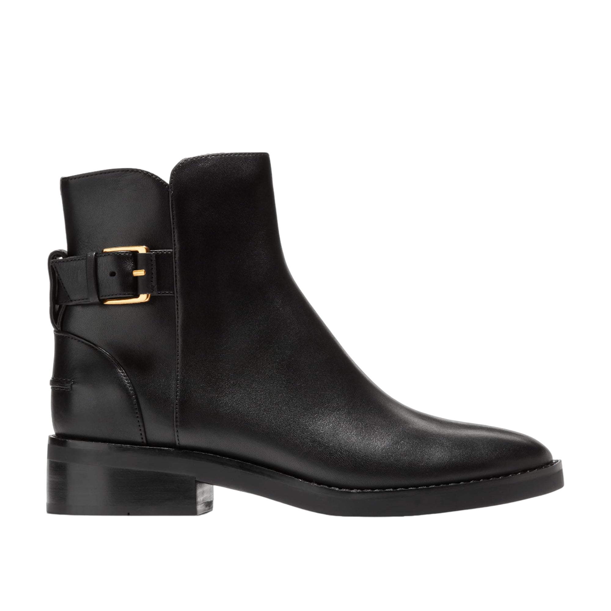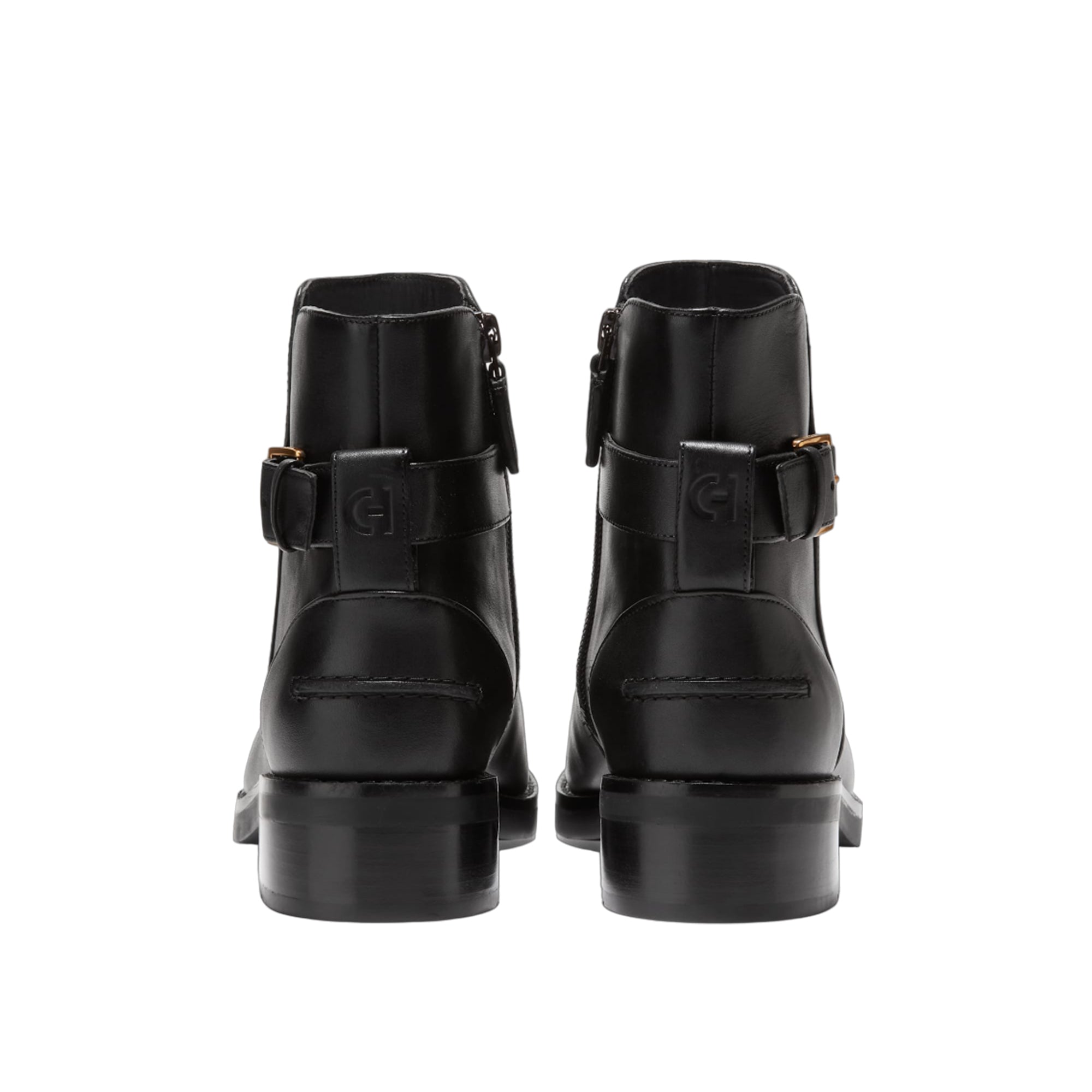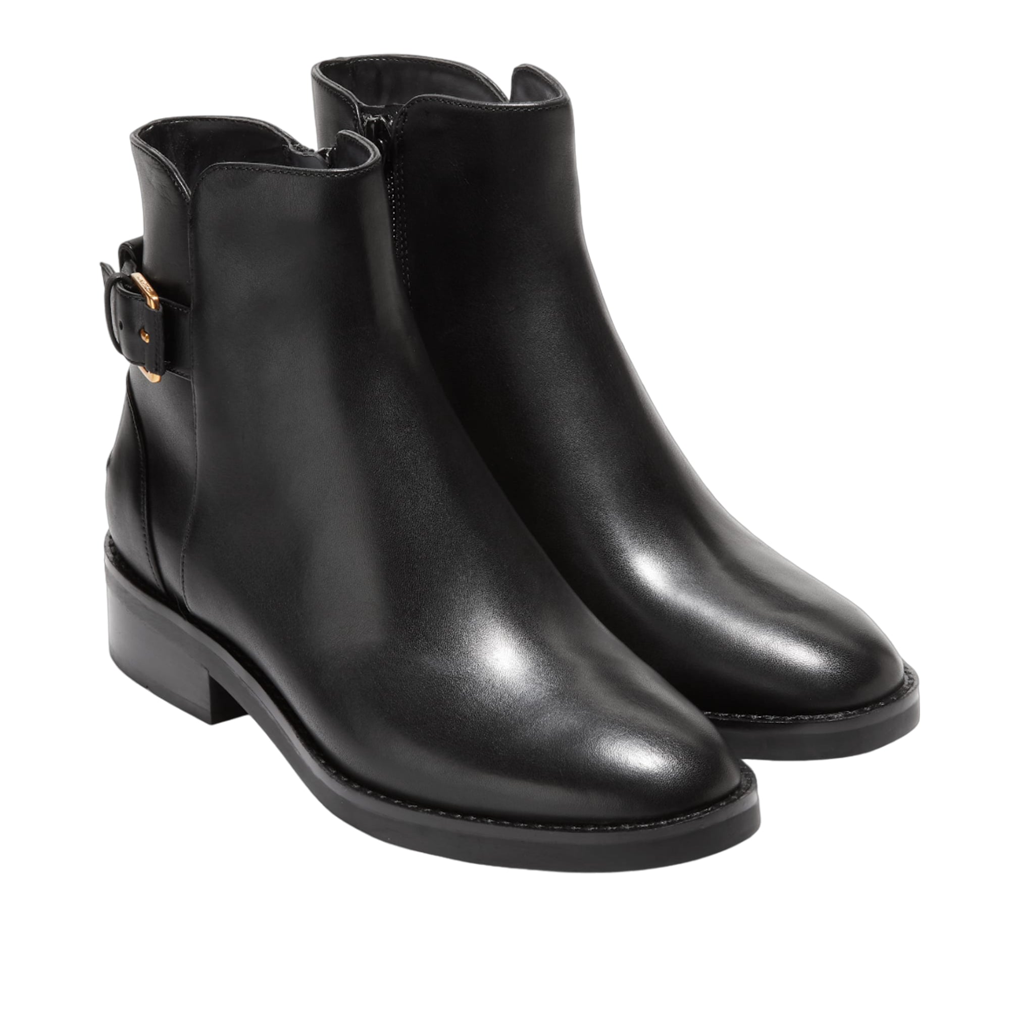 | The Cole Haan Women's Hampshire Buckle Bootie is a stylish and versatile ankle bootie that is perfect for everyday wear. It is crafted from high-quality leather with a low heel for comfortable all-day wear. The bootie features an inside zip for easy entry and a chic CH branded buckle detail on the side. The back pull tab also has a CH embossed logo, adding to the overall design of the bootie. The bootie has a PU lined sock with a fabric liner at the shaft, ensuring that your feet stay comfortable and supported. The rubber outsole has a stacked heel, providing traction and durability. The Cole Haan Women's Hampshire Buckle Bootie is a stylish and practical choice for any fashion-forward woman. SPECIFICATIONS • Brand: Cole Haan • Gender: Women • Low heel ankle bootie crafted in leather uppers. • Inside zip for easy entry. • CH branded buckle detail and CH embossed logo on back pull tab. • PU lined sock with fabric liner at the shaft. • Rubber outsole with stacked heel. • 38mm | 1.5 inch heel. • Cole Haan leather products support responsible manufacturing via the Leather Working Group. About Brand Cole Haan is a luxury fashion brand that specializes in high-end footwear, accessories, and apparel for men and women. Founded in 1928 in Chicago, the brand has become synonymous with sophisticated and elegant fashion, incorporating traditional craftsmanship with modern designs. Known for its quality materials, impeccable craftsmanship, and attention to detail, Cole Haan offers a range of products from dress shoes and boots to sneakers and handbags. The brand is also known for its innovative use of technology, such as its Grand.OS comfort system, which provides lightweight and flexible cushioning for all-day comfort. |