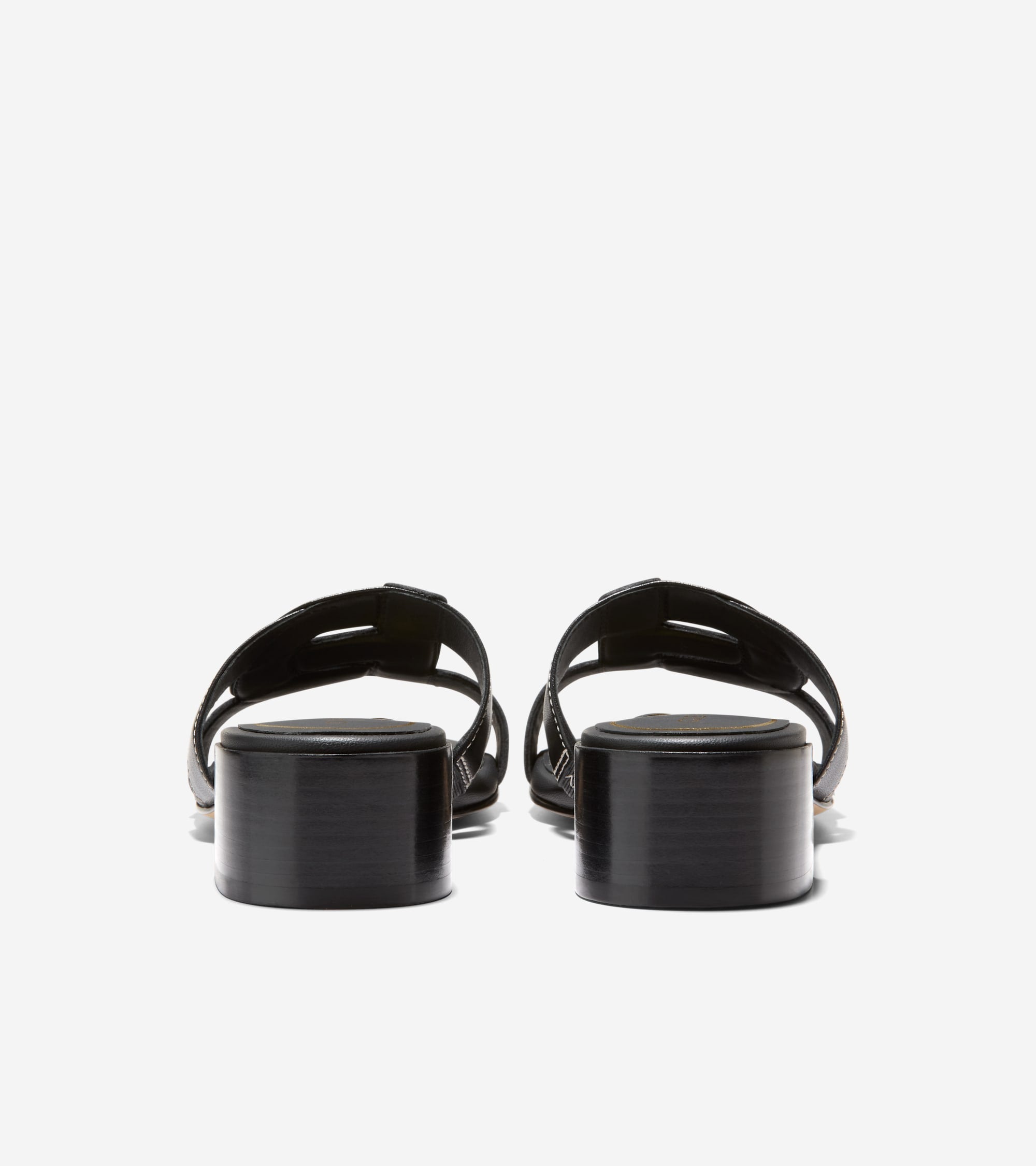 | Cole Haan is a well-known American brand that offers high-quality footwear, clothing, and accessories for both men and women. One of their popular designs is the Chrisee Block Heel Sandal, which combines the comfort of a slip-on mule with the sophistication of a pump. The sandal features a leather upper in a sleek black color, giving it a classic and versatile look. The standout detail of this sandal is the band that runs across the top, incorporating Cole Haan's iconic interlocking CH logo. It has a supportive footbed that helps to cushion and protect your feet while walking. Additionally, the 1.6-inch stacked heel provides just the right amount of height without compromising on comfort. This sandal is perfect for any occasion, whether it's a casual day out or a more formal event. The Cole Haan Chrisee Block Heel Sandal is a stylish and comfortable option for women who want the best of both worlds – the ease of a mule and the polish of a pump. SPECIFICATIONS • Brand: Cole Haan • Gender: Women • Leather upper in Black • Outsole with 32 percent recycled rubber; 40mm (1.6-inch) block heel • Cushioned 3D Lux footbed; built-in arch support • Leather lining About Brand Cole Haan is an American fashion brand known for its high-quality footwear, accessories, and apparel. Founded in 1928, the brand has a long-standing reputation for its craftsmanship and attention to detail. Its products are designed with a focus on blending traditional methods with modern advancements, resulting in a unique and timeless aesthetic. Cole Haan is best known for its innovative use of materials, such as implementing Nike Air technology into its shoes for added comfort. With a commitment to both style and functionality, Cole Haan has become a popular choice for fashion-conscious individuals looking for high-quality and versatile pieces. |