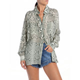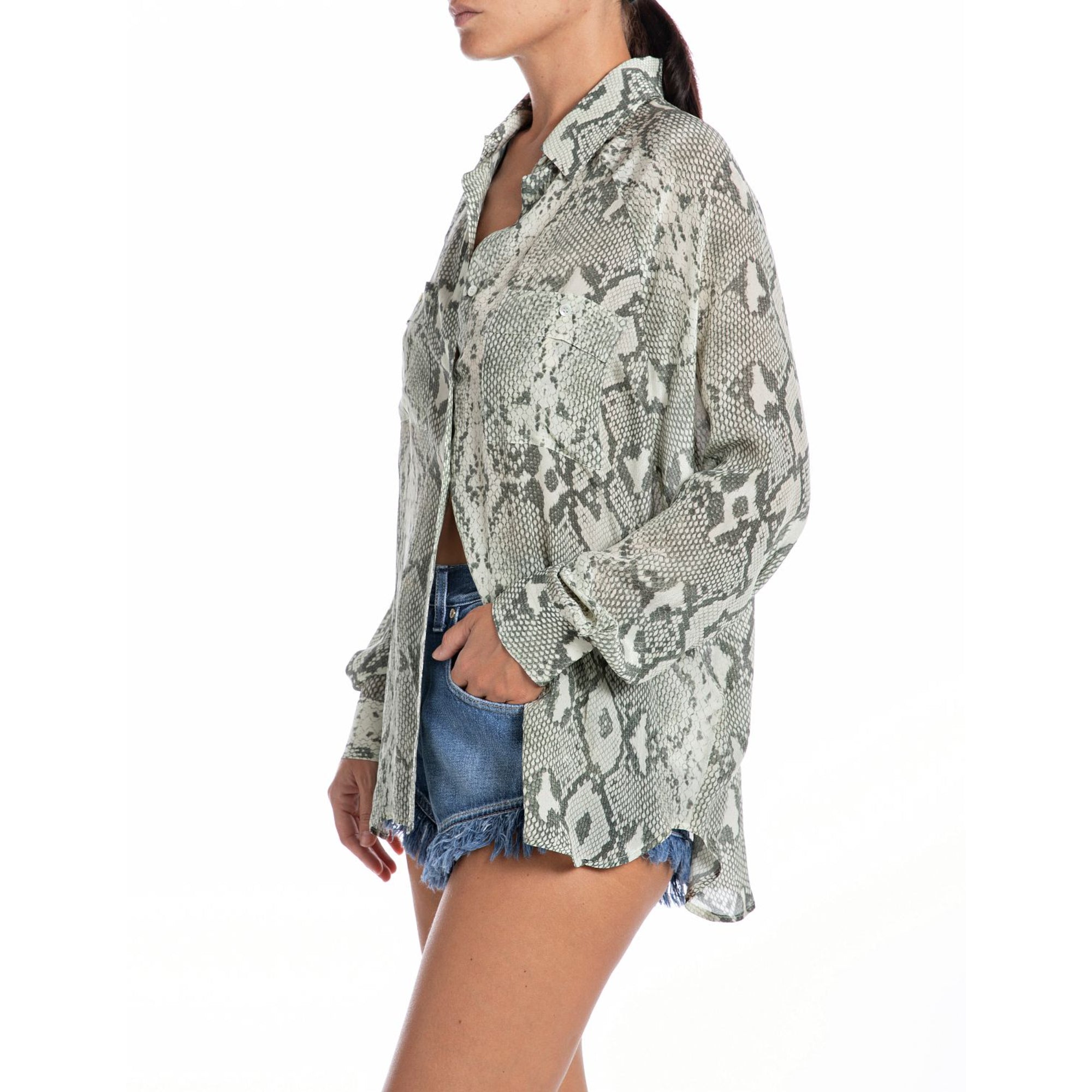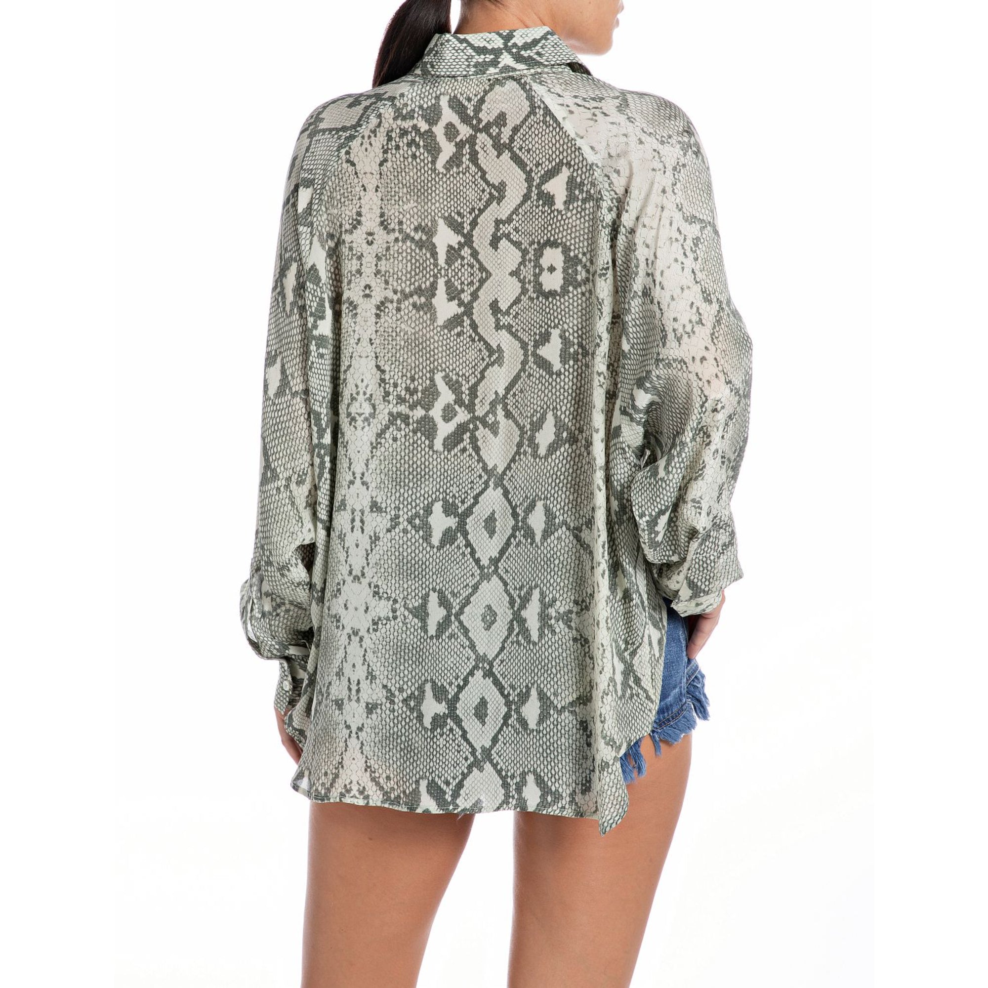 Shirt made of viscose with all-over python print. With long raglan sleeves, the garment features a regular fit. The item is enhanced by the two pockets with flap on the chest and by the buttons fastening. Atelier stands for a new way of wearing denim, with a refined and contemporary collection with clean-cut and feminine items that stand the test of time, season after season. The core Replay fabrics relive in this collection with a mix of contrasts that ensure perfect wearability and a unique style.