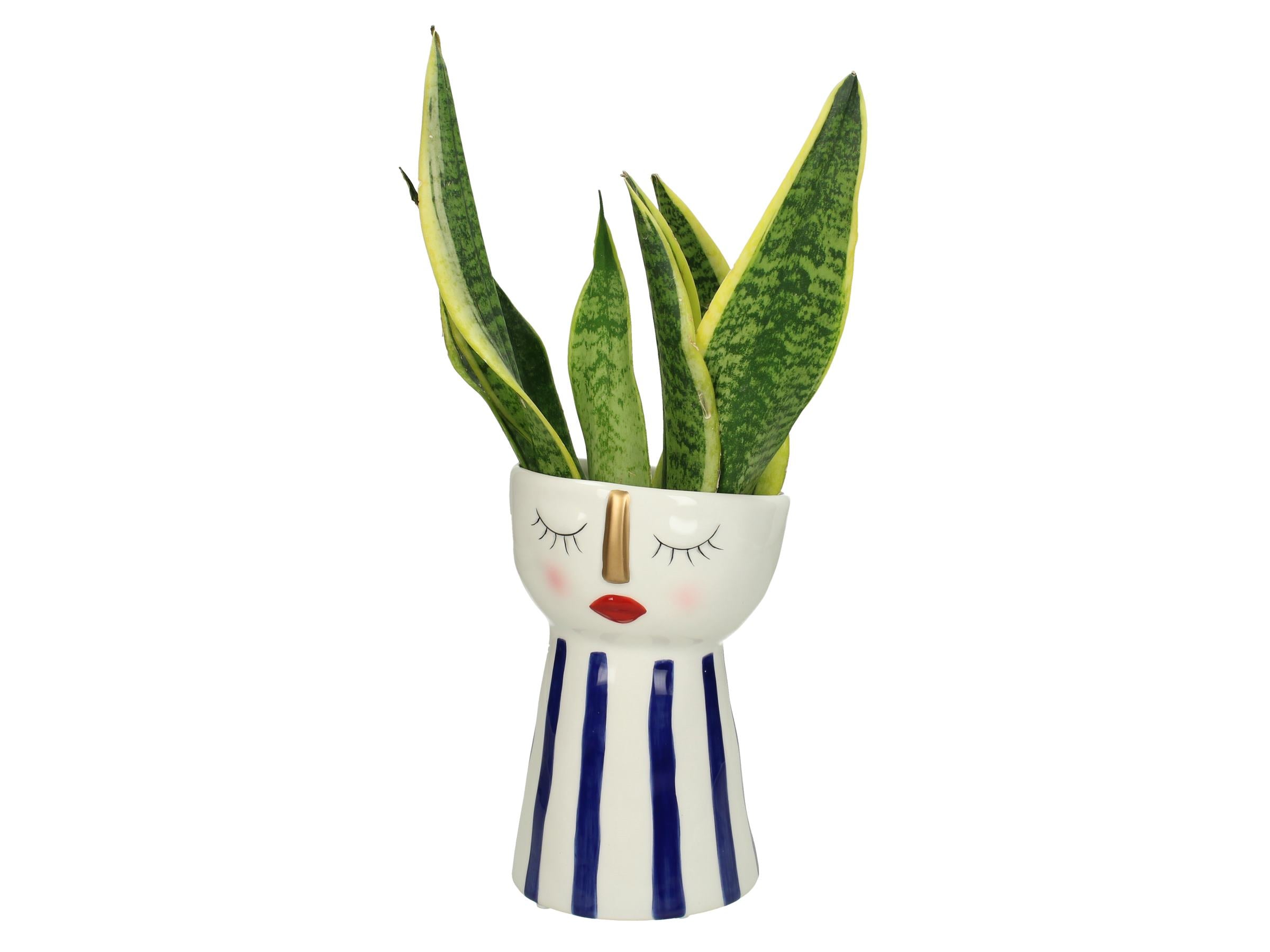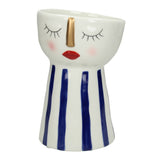 | The Kersten Planter Face Fine Earthenware Blue is a stunning ceramic vase that features a unique design of a face on the top. This handmade piece is carefully crafted with attention to detail, resulting in a one-of-a-kind vessel that will add character and charm to any space. The surface of the vase is decorated with intricately hand-painted blue stripes, adding a touch of color and whimsy. The combination of the face design and the blue stripes creates a visually appealing contrast that makes this vase a statement piece in any room. Made from fine earthenware, this planter is not only beautiful but also durable and long-lasting. It can be used to hold flowers, plants, or simply as a decorative piece on its own. The white base used in the design is calming and versatile, making it easy to incorporate into any home decor style. Whether displayed on a shelf, mantle, or as a centerpiece, the Kersten Planter Face Fine Earthenware Blue is sure to be a conversation starter and a cherished addition to any home. Its intricate hand-painted details and unique design make it a true work of art that will bring joy and beauty to its surroundings. SPECIFICATIONS • Brand: Kersten • Size: 12x12.8x18.4 Cm • Ceramic vase featuring a unique face design on top • Handmade with attention to detail for a one-of-a-kind piece • Decorated with intricately hand-painted blue stripes • Contrasting face design and blue stripes for a visually appealing look • Made from durable fine earthenware • Can be used as a planter or as standalone decorative piece • Versatile white base for easy incorporation into any home decor • Suitable for use as a shelf, mantle, or centerpiece display • A conversation starter and cherished addition to any home • Intricate hand-painted details and unique design make it a work of art |