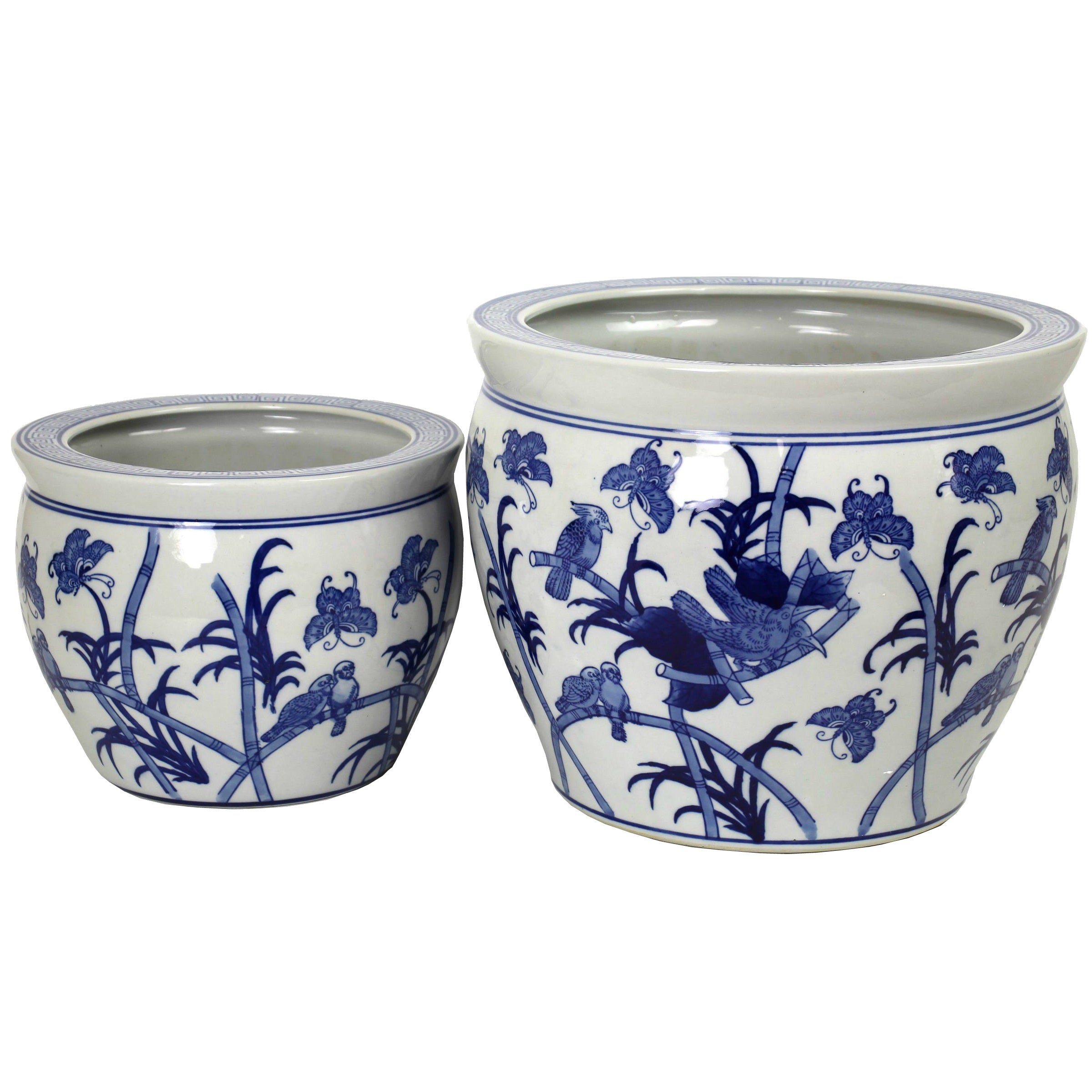 Kersten Planter Porcelain Blue Set of 2, Size: 40.5x40.5x32.5 Cm