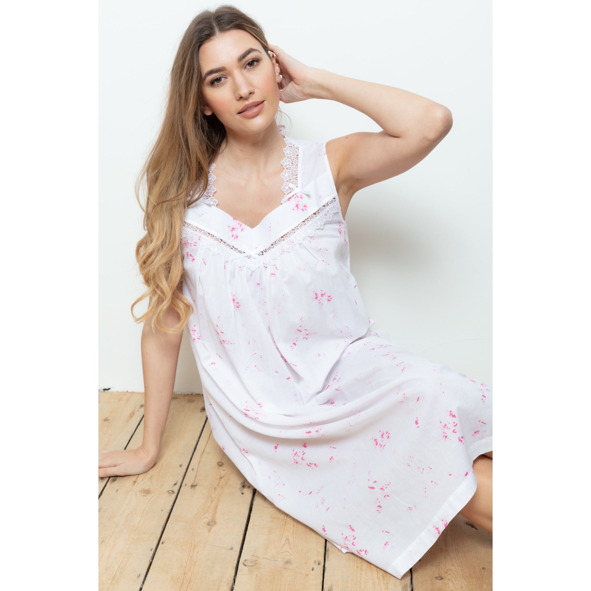 Cottonreal Women's Yasmina White/Pale Pink Nightdress