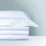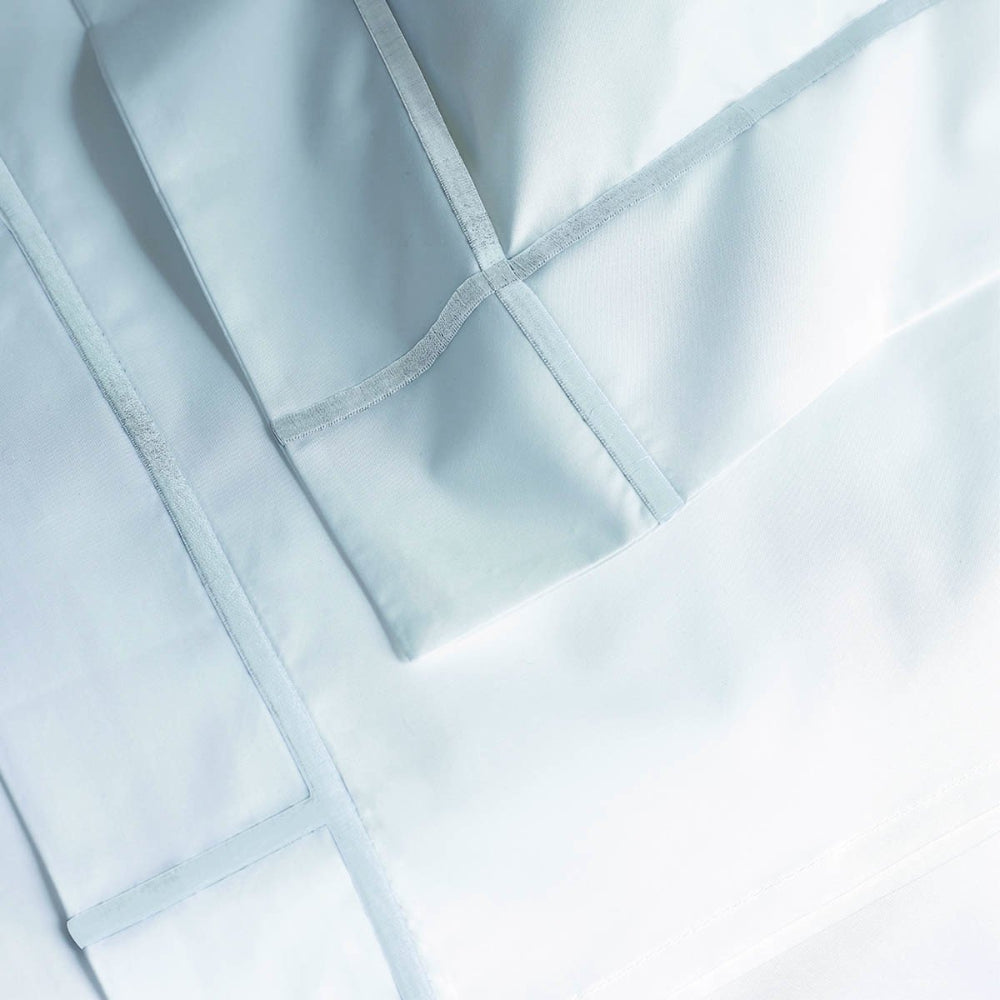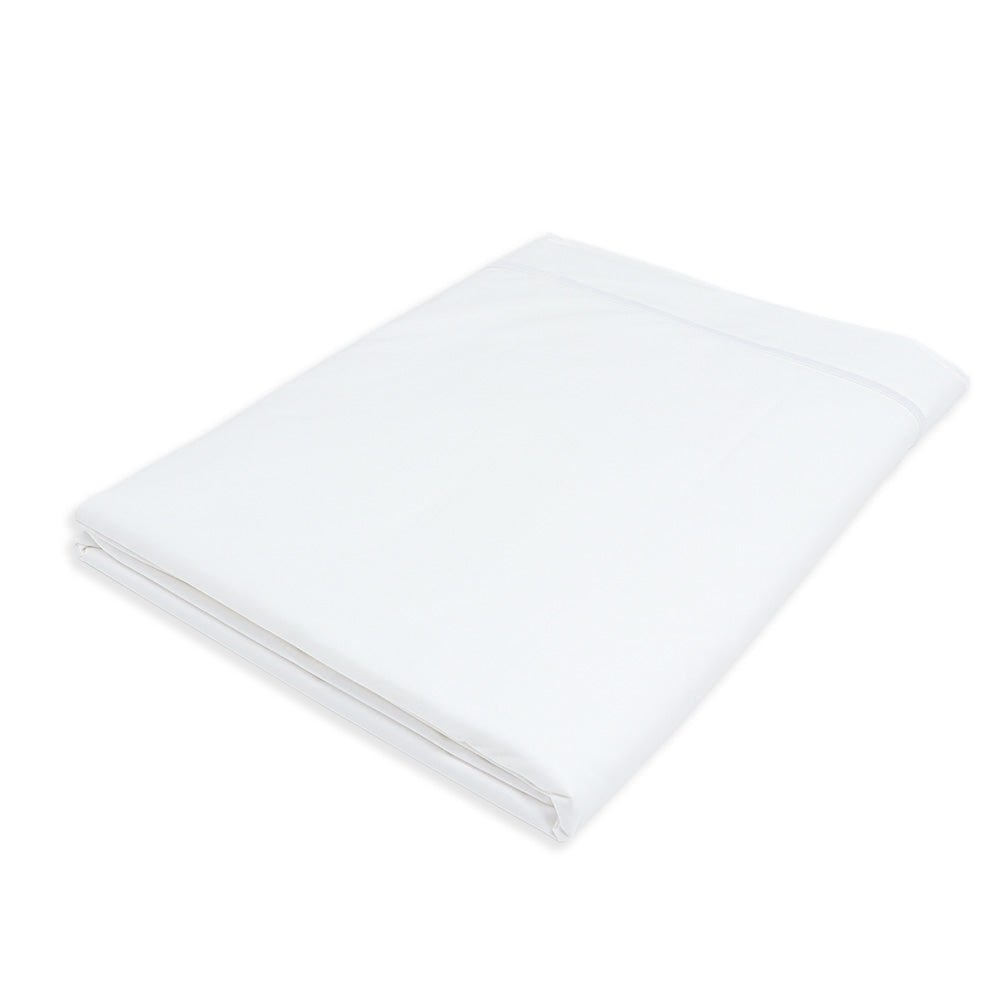 Luxury long-staple Combe Solid Percale, 500 thread count. Flat Sheet has embroidery line along the top side with intersections in the top two corners.