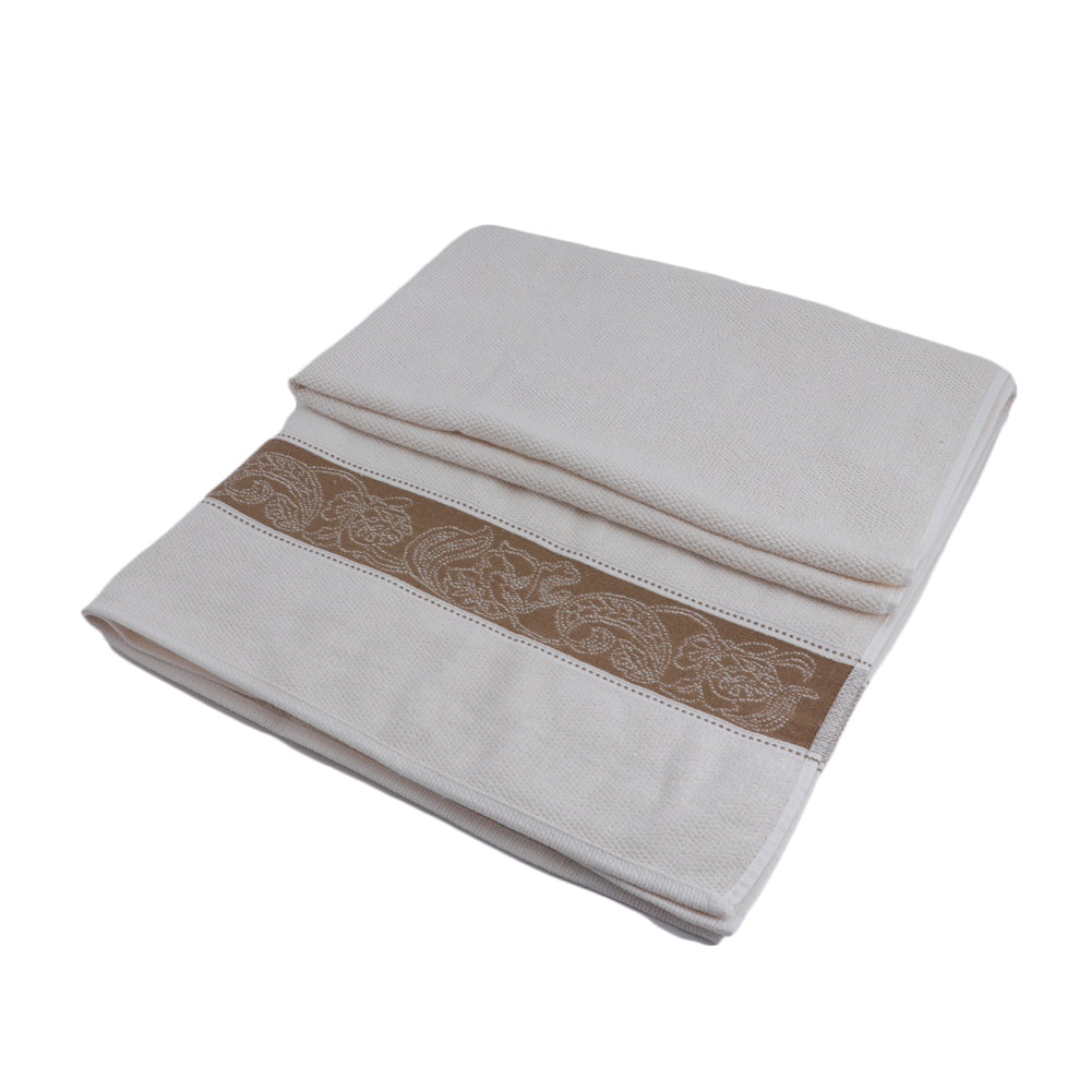 Feminine and ultra-refined complete with sophisticated, hand-embroidered style flowers along the border of these jacquard towels.