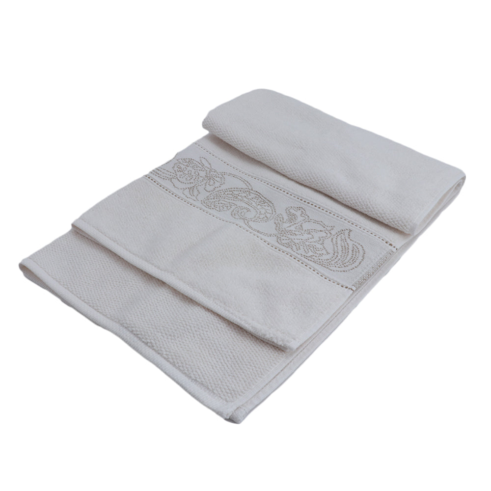 Feminine and ultra-refined complete with sophisticated, hand-embroidered style flowers along the border of these jacquard towels.