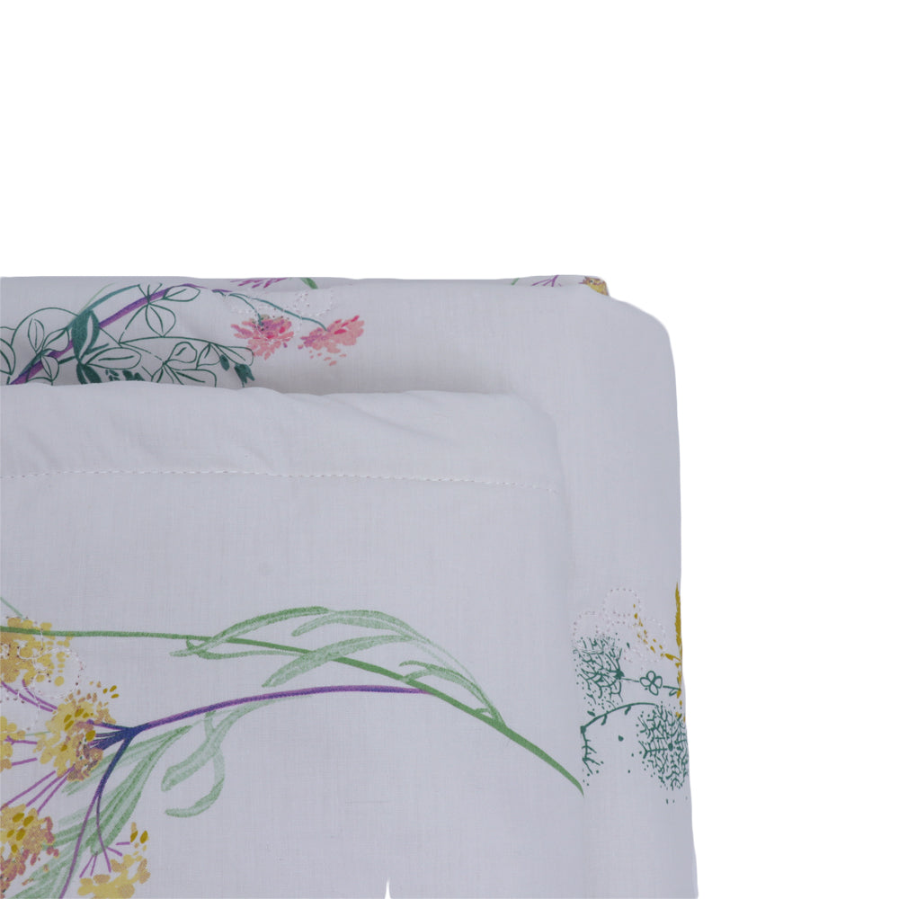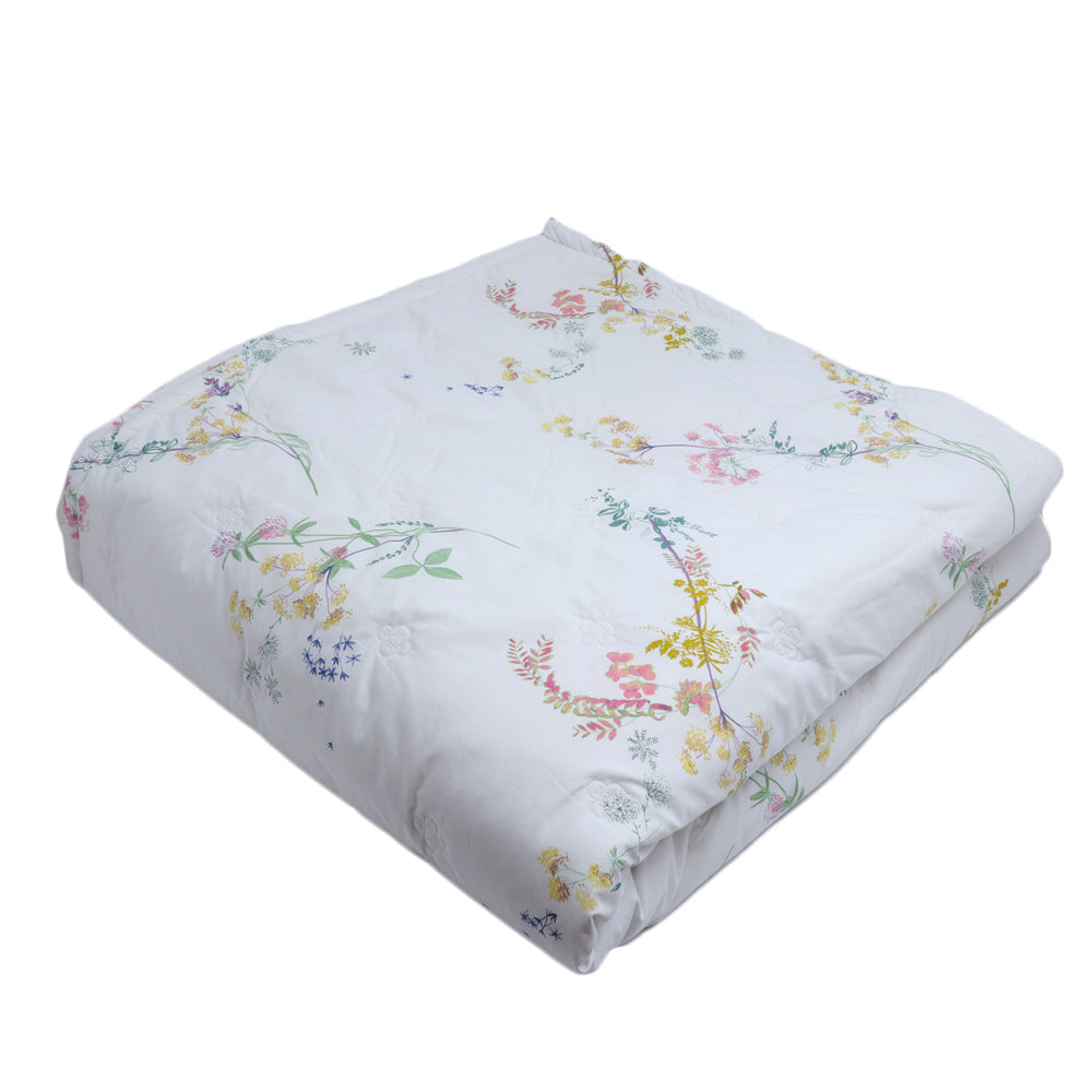 Luxury long-staple Combed Cotton Percale, flowers stitching, 1 inch hem finish, 200 thread count.