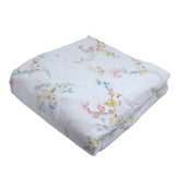 Quilted Bedspread is floral branch print with White background on the front and Tea Rose dot print on the reverse.