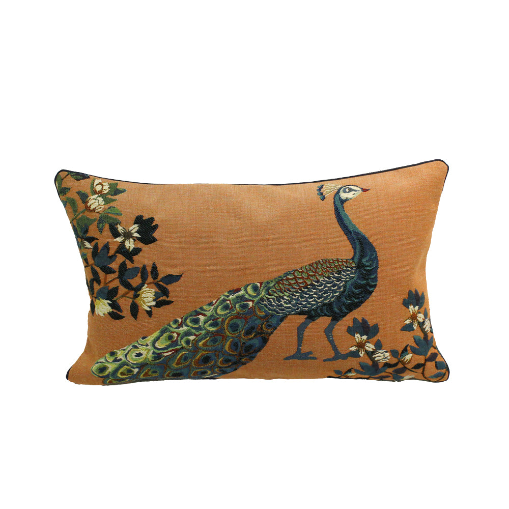 The Yves Delorme Iosis - Lelegant Decorative Pillow. This pretty pillow is made of woven tapestry and features a peacock with blooming foliage on the front and woven chevron on the back. Made in France