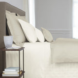 Luxury long-staple Combed Cotton Sateen, 300 thread count. Flat Sheet has double saddle stitch across top side.