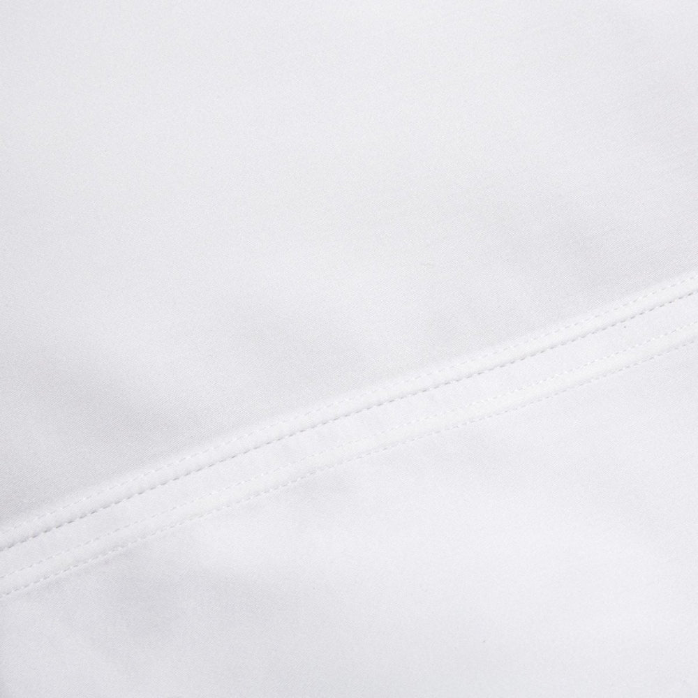 Luxury long-staple Combed Cotton Sateen, 300 thread count. Pillowcase has double saddle stitch across open side.