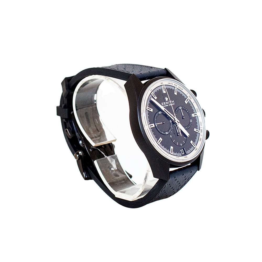 Range rover limited edition, el primero,black ceramic case,blue calfskin strap with rubber back,brushed grey dial,rhodium plated hands & applied indexes with luminous tips,chronograph, 326 components & an approximate power reserve of 50 hours.
